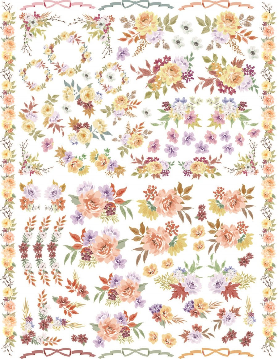 水彩画の四季お花を4ゾーンに分けた転写紙です。